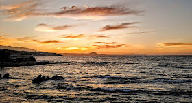 Greece has a coastline of 13.6 million metres (13,676 km) … sunset on the rocky coastline below the Fortezza in Rethymnon in Crete (Photograph: Patrick Comerford, 2025)